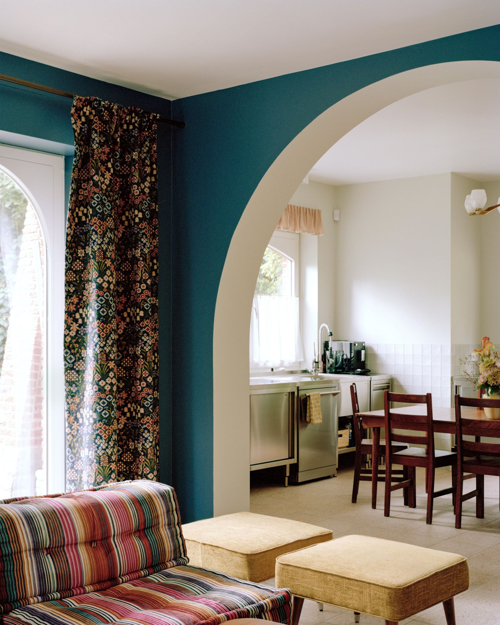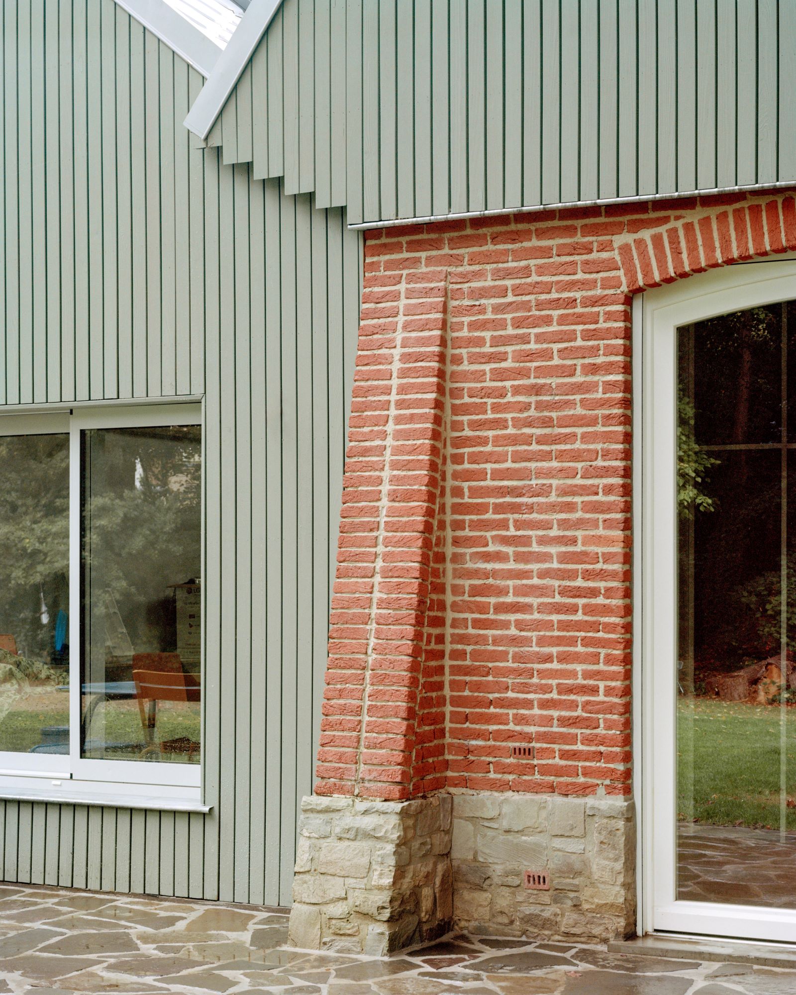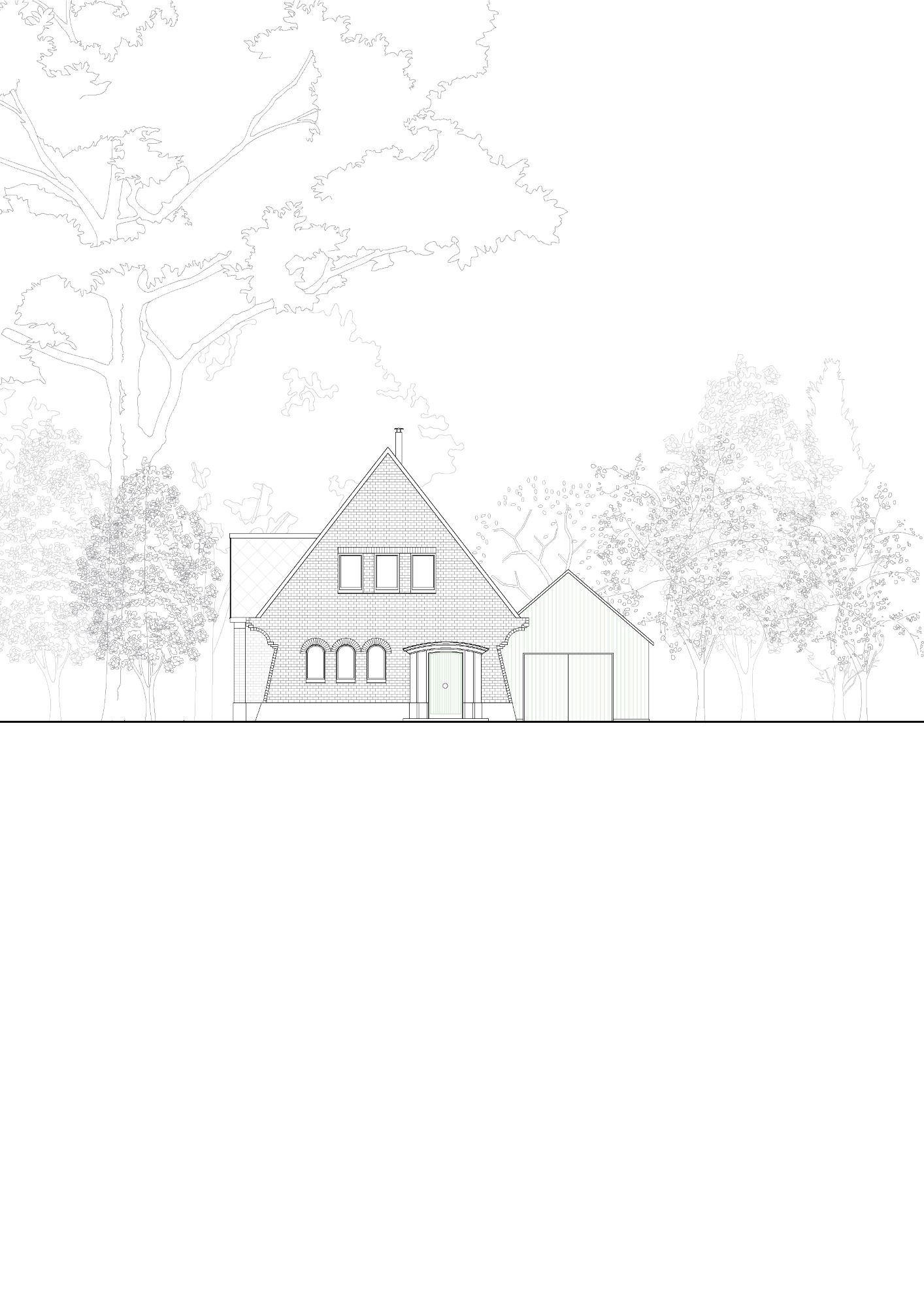 This house sits at the edge of the Forêt de Soignes. The project reorganises the interior and adds a timber cladding extension with a zinc roof that continues the existing volume, improving the relationship with the garden while keeping the intervention minimal.